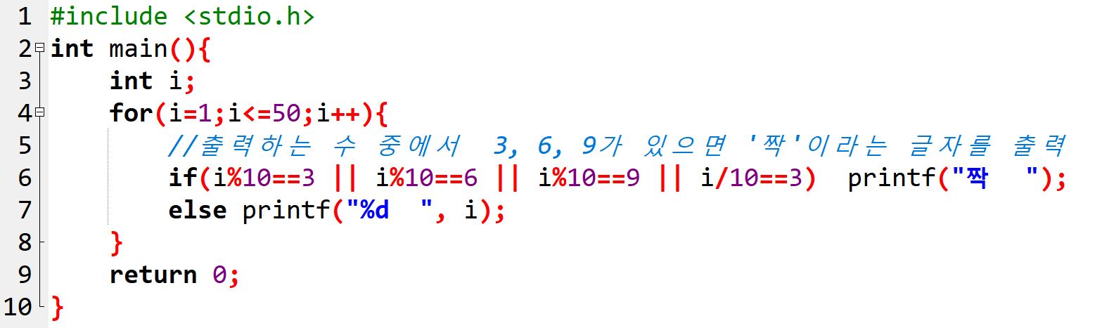 if(i%10==3 || i%10==6 || i%10==9 || i/10==3) printf("짝 ");