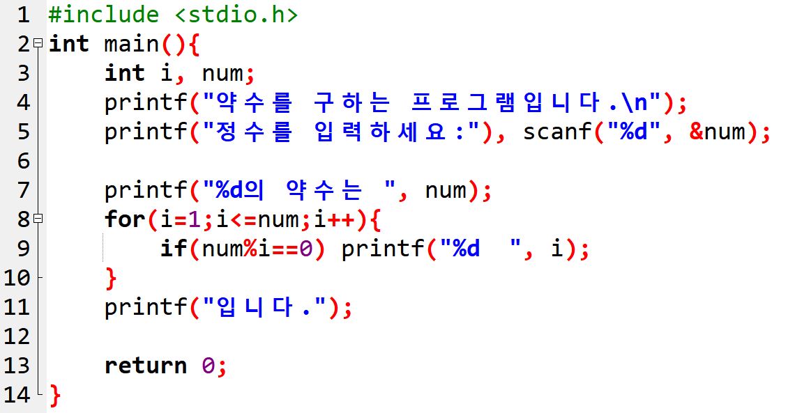 printf("약수를 구하는 프로그램입니다.\n");