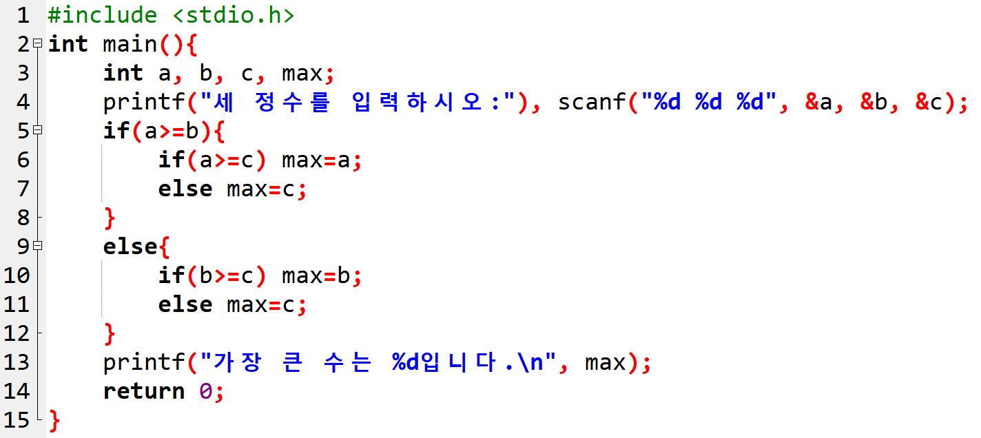 printf("세 정수를 입력하시오:"), scanf("%d %d %d", &a, &b, &c);