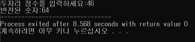 [도전 17일차] 아래의 출력화면과 같이 입력받은 두 자리 정수를 반전된(거꾸로된) 숫자로 출력하시오.