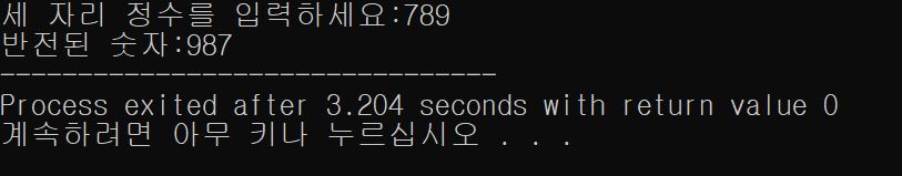 [도전 18일차] 아래의 출력화면과 같이 세 자리 정수를 입력받아 반전된(거꾸로된) 숫자를 출력하시오.