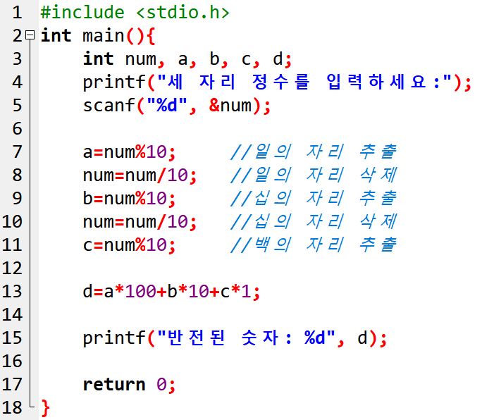 rev=rev+a*100; //일의 자리를 백의 자리로 전환