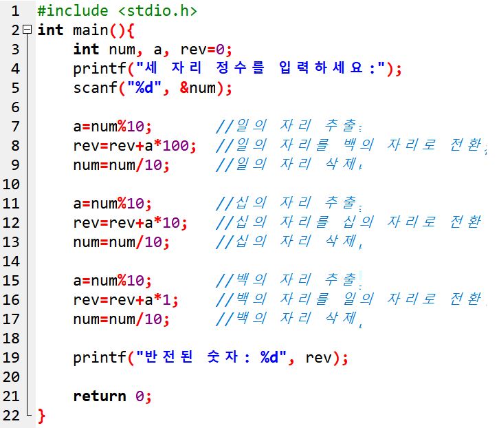 rev=rev+a*100; //일의 자리를 백의 자리로 전환