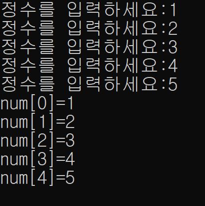 (1단계) 예제 : 배열을 이용하여 정수 5개를 입력받고 출력하기