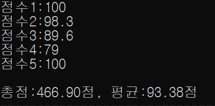 printf("\n총점:%.2f점, 평균:%.2f점", sum, avg);