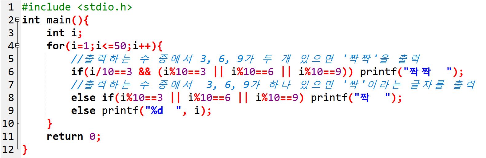 else if(i/10==3 || i%10==3 || i%10==6 || i%10==9) printf("짝 ");