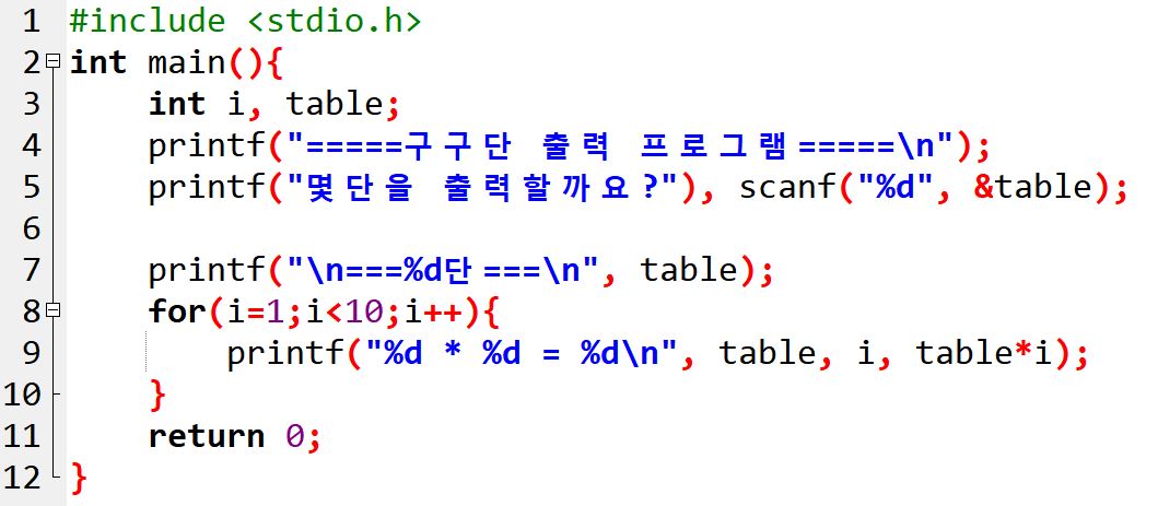 printf("몇단을 출력할까요?"), scanf("%d", &table);